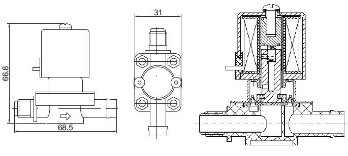 | DHWS4 Series Direct acting, small plastic solenoid valve, 2WAY NCCharacteristic:  1.Direct acting miniature construction at low power consumption