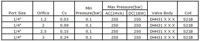 | DHH31 Series High Pressure Diaphragm Pilot Operated, Normally ClosedCharacteristic:  1. High pressure solenoid valve with Pilot operated  diaphragm construction for compress air machine, injecting plastic  machine